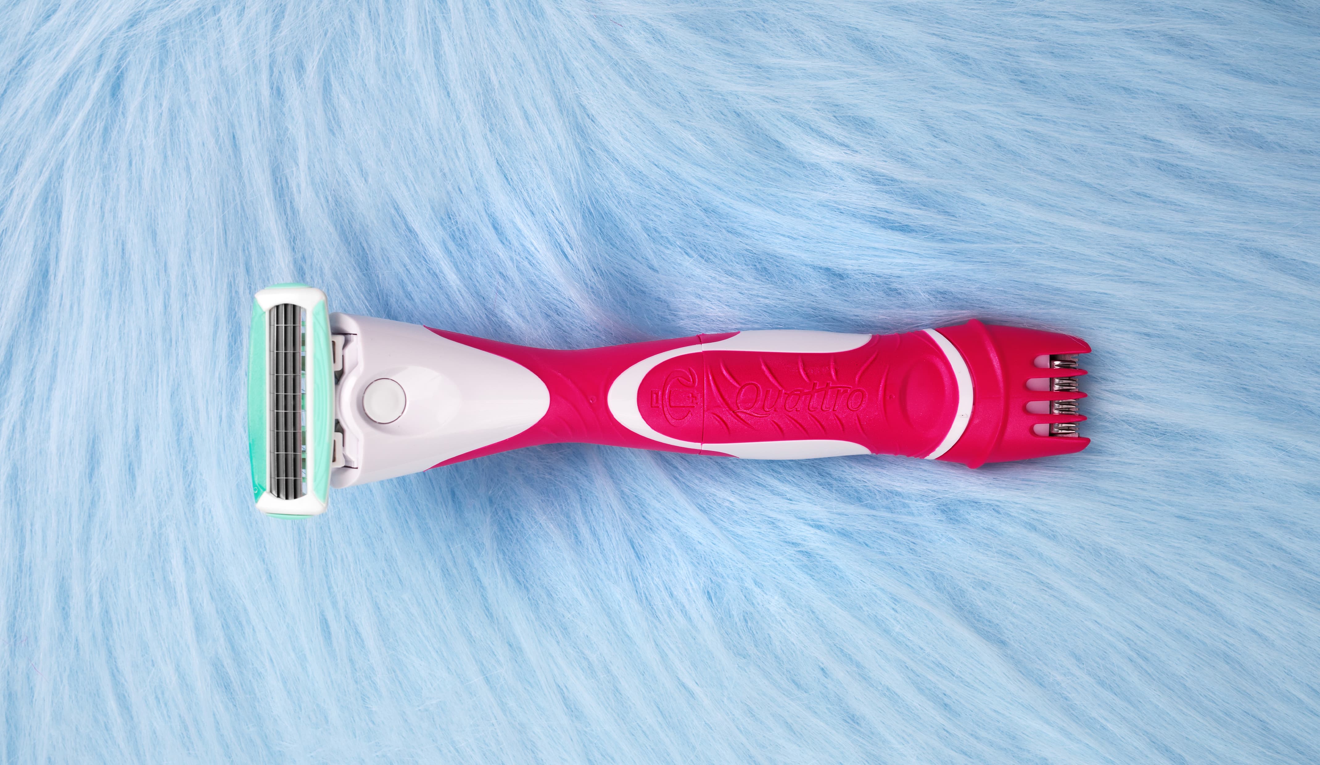 Quattro Bikini-rakhyvel, rakblad och en stor tub exklusiv rakkräm.